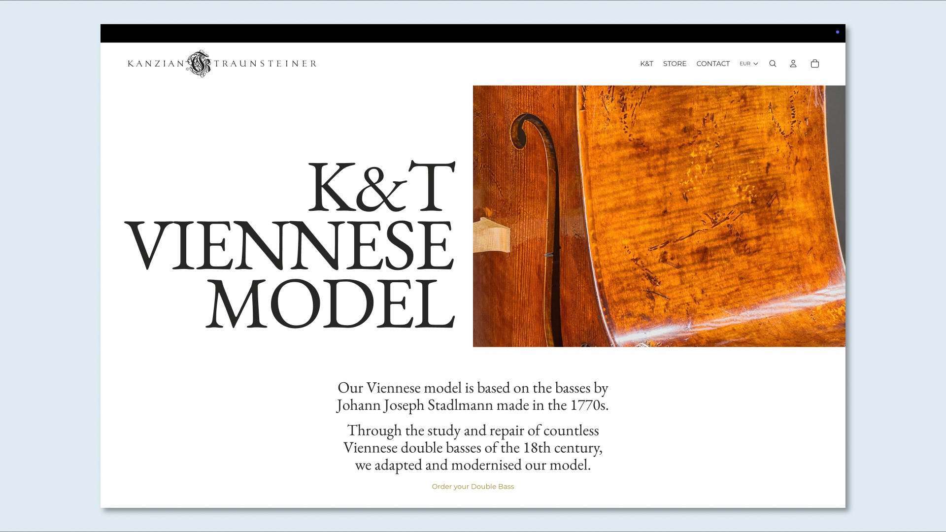 Kanzian & Traunsteiner is a high-end, craft-driven workshop in Vienna, creating bespoke double basses for master musicians. We worked closely together and translated their dedication to precision and artistry into a refined visual language, spanning typographic and colour direction, web store design, social media content, and custom motion graphics and illustrations. By translating their craftsmanship into a contemporary visual language, K&T achieved stronger recognition and increased engagement across digital platforms. Please see the result at: doublebassmaker.com